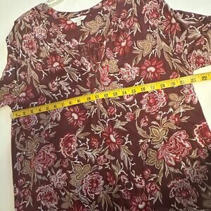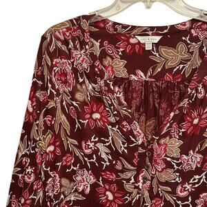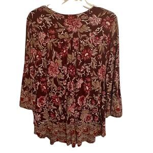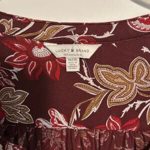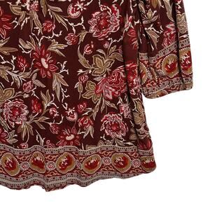 Lucky Brand Floral Border Top Womens Size 1X Burgundy V-Neck Peasant Boho Knit