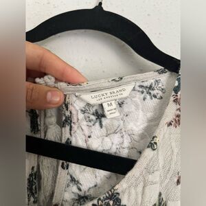 Lucky Brand Floral Dress Grey Boho Peasant Size M