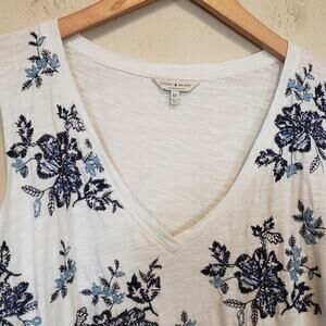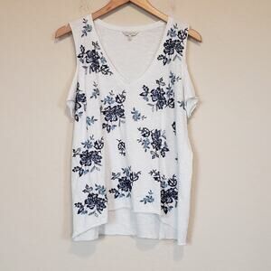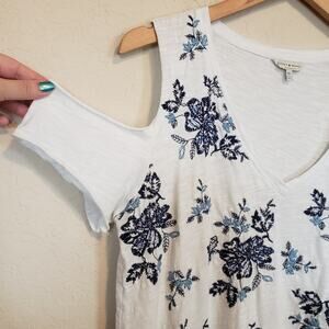 Lucky Brand Floral Embroidered Cold Shoulder Tee Shirt Top Boho Women's Medium