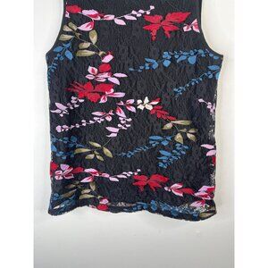 Add a touch of boho charm to your wardrobe with this Lucky Brand floral lace tank top. Featuring a sheer embroidered overlay with vibrant floral detailing, this sleeveless blouse is perfect for layering or wearing on its own. Lightweight and comfortable with a soft black lining, it's ideal for casual summer days, music festivals, or relaxed weekend looks.