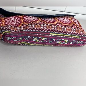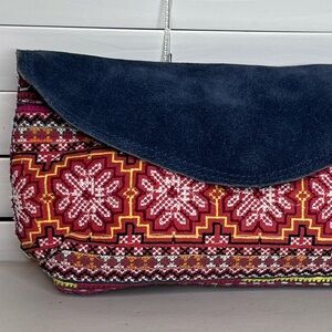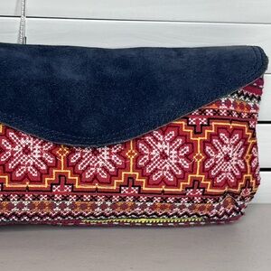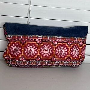 Lucky Brand Floral Embroidered Leather Suede Boho Clutch Bag.