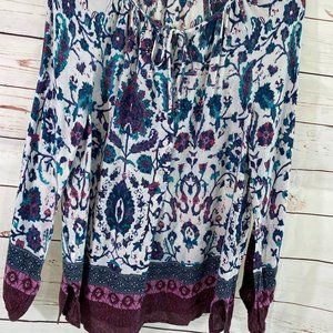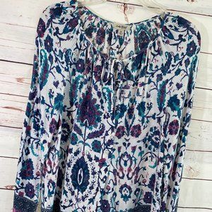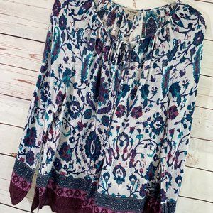Lucky Brand Floral Graphic Print Long Sleeve Pullover Tunic NWOT Women's Medium