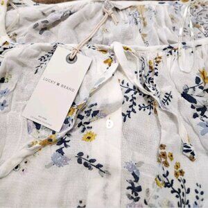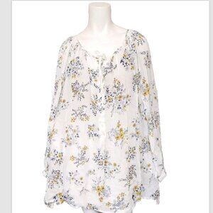 Lucky Brand White with multicolor Floral Long Sleeve Keyhole Tie Neck Button Down Top Blouse Women's Plus Size 3X. New with Tags at $89.50. Marks on store tag only. No flaws on garment.