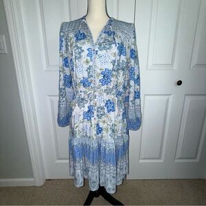 Lucky Brand Floral Long Sleeve Dress in Blue and White size large 100% rayon