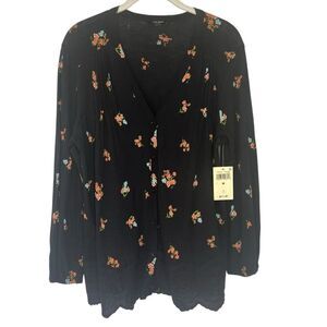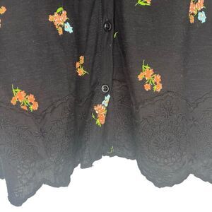 Lucky Brand Floral Peasant Top Womens Medium Embroidered V-Neck Button Front