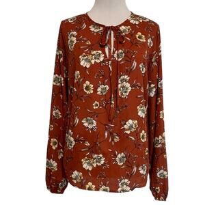 Lucky Brand Floral Peasant Top Womens Small Rust Brown Boho Long Sleeve Blouse