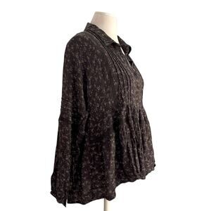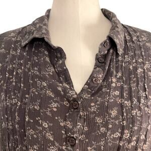 Lucky Brand Floral Peasant Top with Buttons, Lace & Collar | Size S
