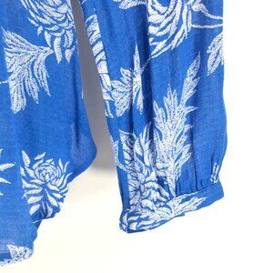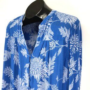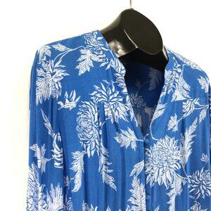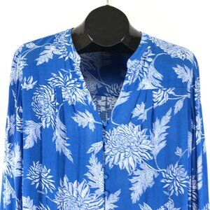 Lucky Brand Floral Print Button Up Blouse Women's Large Rayon Boho Relaxed Fit