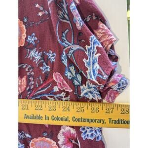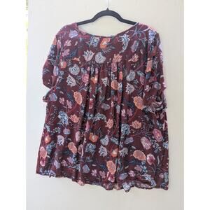 Lucky Brand Floral Print Lace Up Blouse top Shirt Size 3XL Burgundy Floral Boho