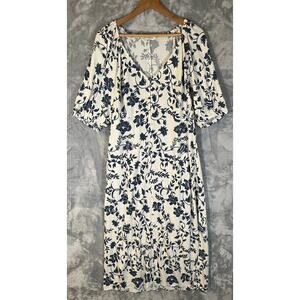 Lucky Brand Floral Puff Sleeve Babydoll Midi Dress XL Peasant Casual Boho