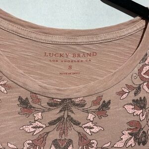 Excellent condition Lucky Brand floral rose graphic tee. Size small. Spin cotton jersey. Bust 34”, length 25”.