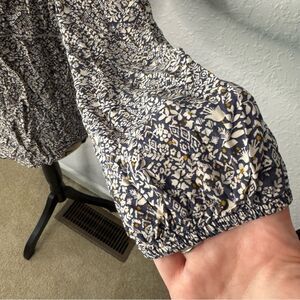 Lucky Brand Floral V Neck Long Sleeve Top Size S Boho Peasant 70s Hippie Casual