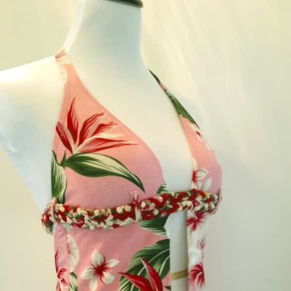 This gorgeous bold floral deep v halter swimsuit is a spectacular it has many lovely details its a halter tie as well as a back tie. The designer rope adds to the beauty of the swimsuit it has great control so contouring is enhancing. NWOT