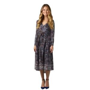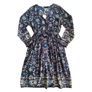 Lucky Brand Florence Border Print Dress Navy Blue Size XS NWT
