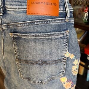 Lucky Brand, Flower Embroidered mid rise straight, 10/30A