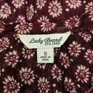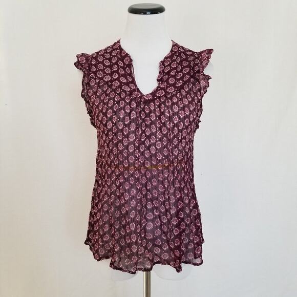 Lucky Brand Flutter Sleeve Burgundy Print Sheer Blouse