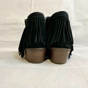 "The vintage design, suede make and sassy fringe flair will draw all eyes to these booties."