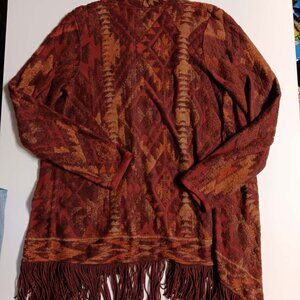 Lucky Brand Fringe Drape Aztec Southwest Western Cardigan Orange Red large