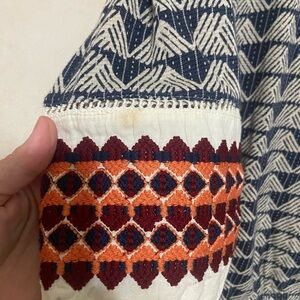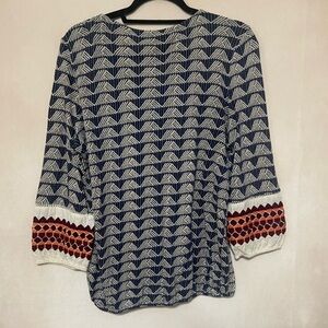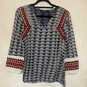 Lucky Brand GUC mixed media mixed print embroidered boho peasant top size M