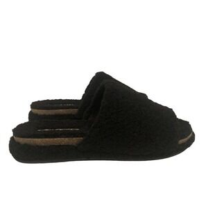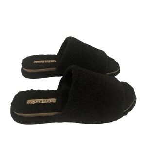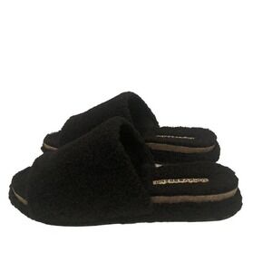 LUCKY BRAND WOMENS GADINI BLACK SLIDES FLEECE SLIPPERS SHOES 9 MEDIUM