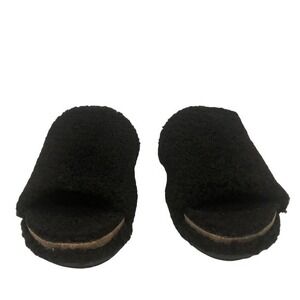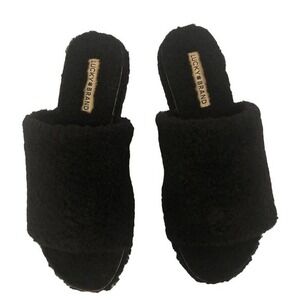 Lucky Brand Gadini Women's Faux Shearling Open Toe Slide Slippers Black Size 9