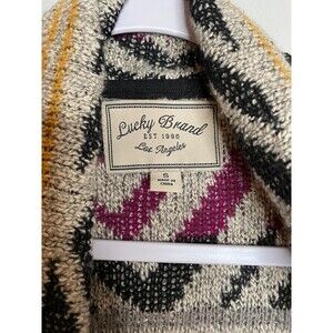 Lucky Brand Geometric Design Soft Warm Cozy Chunky Open Front Cardigan Small