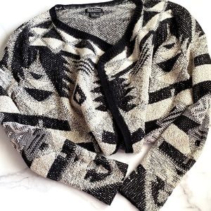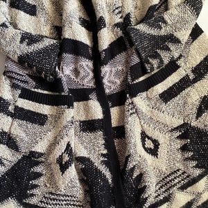 Lucky Brand Geometric Open Front Drape Cardigan Black/Gray. Sz S. Long sleeve, open front, drape front cardigan.