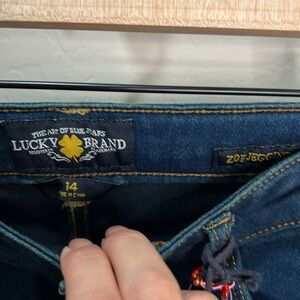Brand new with tags. Girls size 14 lucky brand jeans. Style is Zoe Jegging. Super comfy and stretchy. See measurements in pixs.
