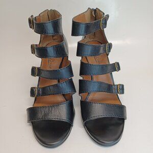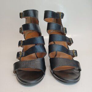 Lucky Brand Gladiator Wedge Sandals Black Leather Size 6.5