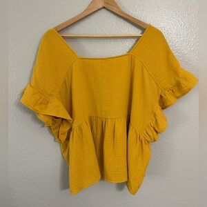 Lucky Brand Gold Yellow 100% Cotton Flutter Top