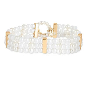 A gracefully designed bracelet composed of imitation pearls and golden tones