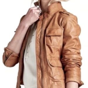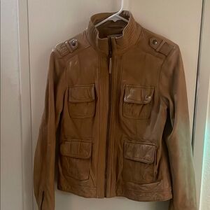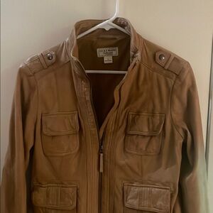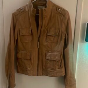 Lucky Brand Golden Tan Leather Jacket with Stand-Up Collar