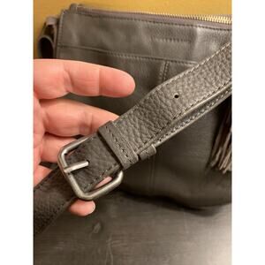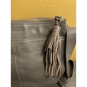 Stylish gray crossbody bag. Features tassel detail. Perfect for everyday use.