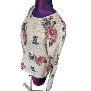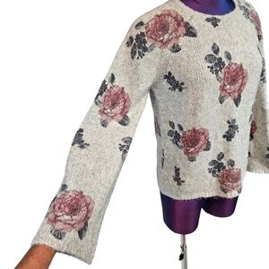 In excellent condition Lucky Brand Gray Floral Scoop Neck Flare Sleeve Sweater Size Small Women's.