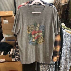Lucky Brand Gray Graphic Tee with Heart and Flowers “Trditional Tatoo”