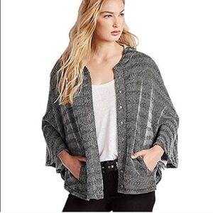 Lucky Brand Gray Herringbone Hooded Poncho Size XS/S