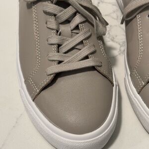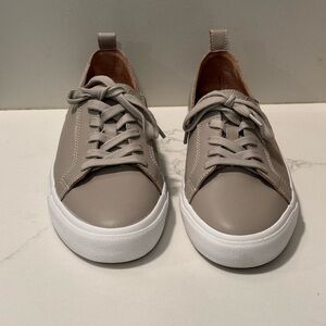 Stylish gray sneakers with white soles. Perfect for everyday wear. Size 8.5. Worn once. In excellent condition. They run small in my opinion but I think the leather needs to break in.