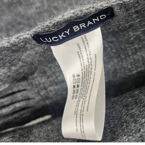 Stay cozy and stylish this winter with this lovely gray knit scarf from Lucky Brand! This scarf is perfect for adding a touch of warmth and texture to any outfit.