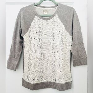 Stay cozy and stylish with this elegant gray and white knit sweater. Perfect for any casual outing.