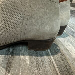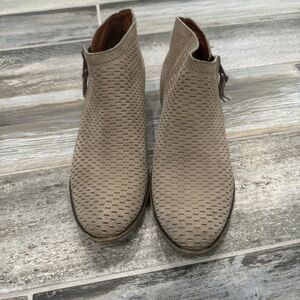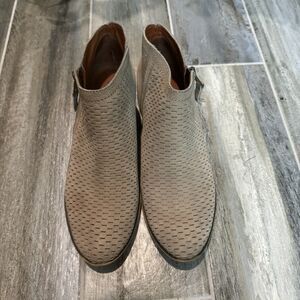 Lucky Brand Gray perforated side zip leather bootie Size 7.5 M Taupe Beige Color