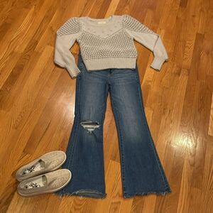 Lucky Brand | Gray Textured Dot Crewneck Sweater Size Small - Excellent Condition