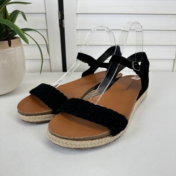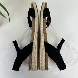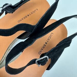 Lucky Brand Grecilyn Black Suede Espadrille Sandal Flats Woven Shoe Size 10 M