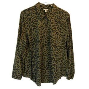 Lucky Brand | Green & Black Penelope Leopard Print Button Down Shirt Size XL