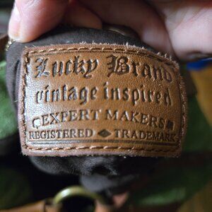 This Lucky Brand hobo bucket shoulder bag combines green suede with brown leather trim for a stylish and practical accessory. Perfect for daily use, it offers ample space and a trendy look. Retail $250