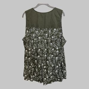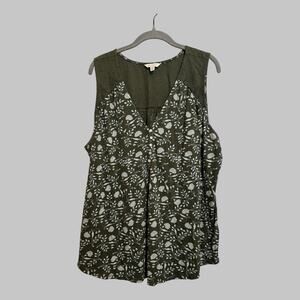 Lucky Brand Green V-Neck Tunic Bohemian Floral Embroidered Lace Tank Plus 1X