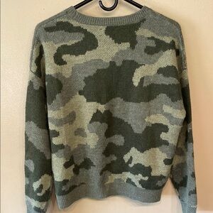 Lucky Brand Green and Gray Camouflage Crew Neck Sweater