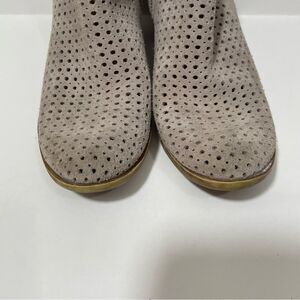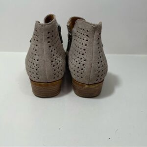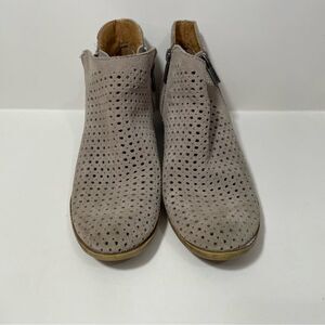 Gently worn women’s size 6-inner size tag removed lucky brand grey laser cut out ankle booties. Please review all photos for any signs of wear-pictured as is. Disclaimer: Any items with any wear/staining has not been treated, and unsure of ability to remove/treat condition. Comes from a smoke free home, bundle with other items to save & minimize shipping cost.