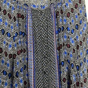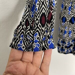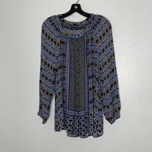 Lucky Brand Gypsy Ikat Peasant Button Up Long Sleeve Rayon Blouse