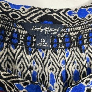 Lucky Brand Gypsy Ikat Peasant Button Up Long Sleeve Rayon Blouse Plus Size 1X