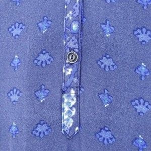 Condition: Good preowned condition. Half button. Front is a different fabric than the back and sleeves. Tab sleeves. Split hem